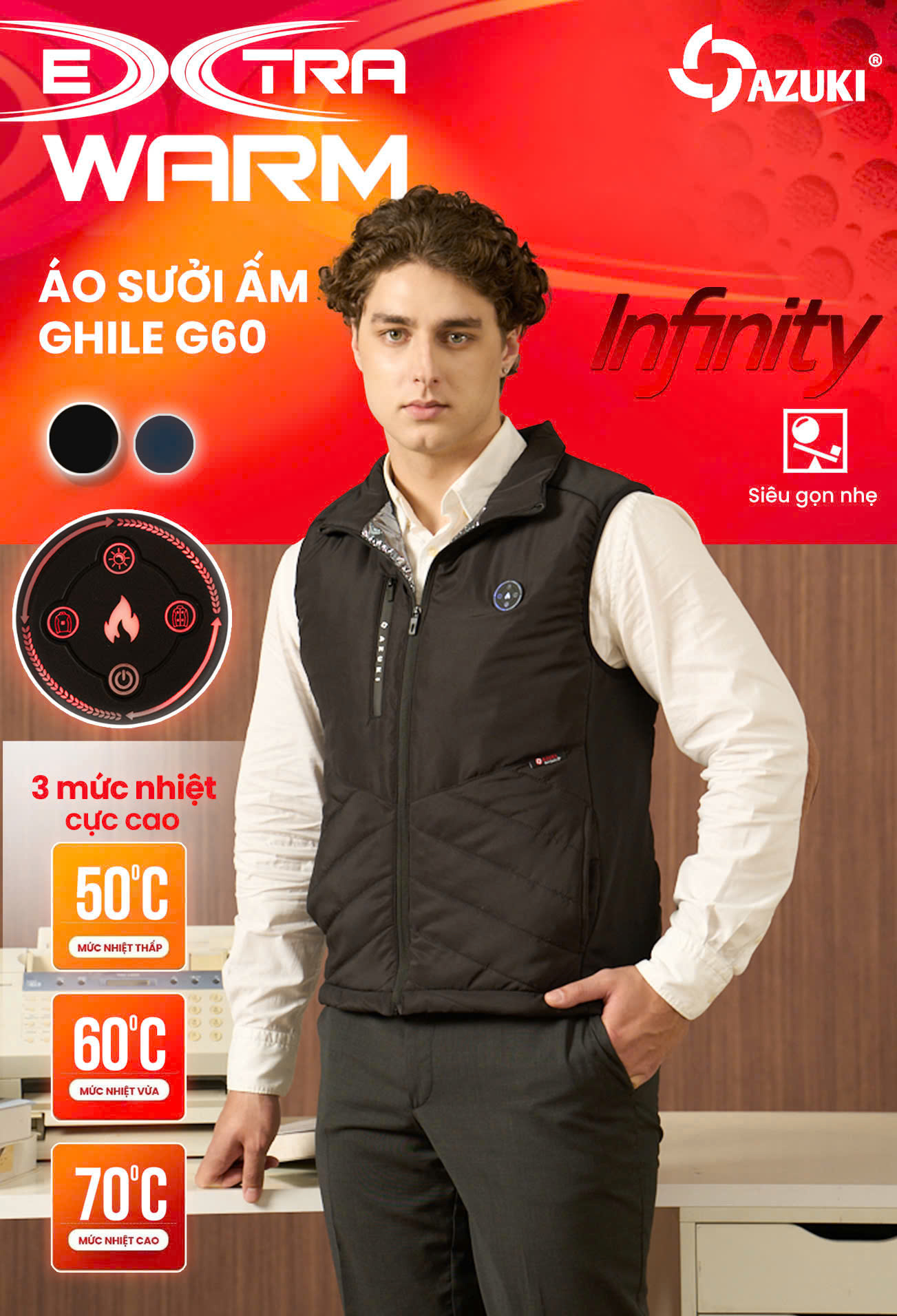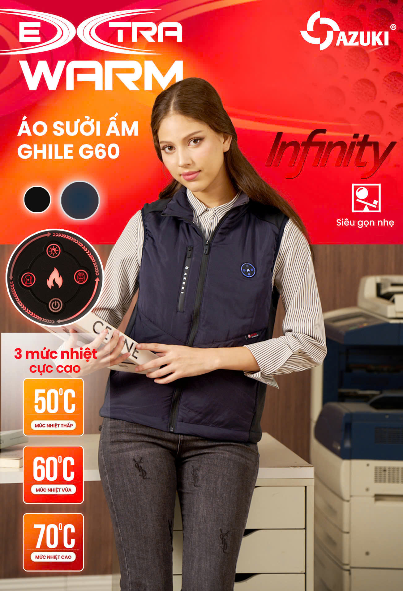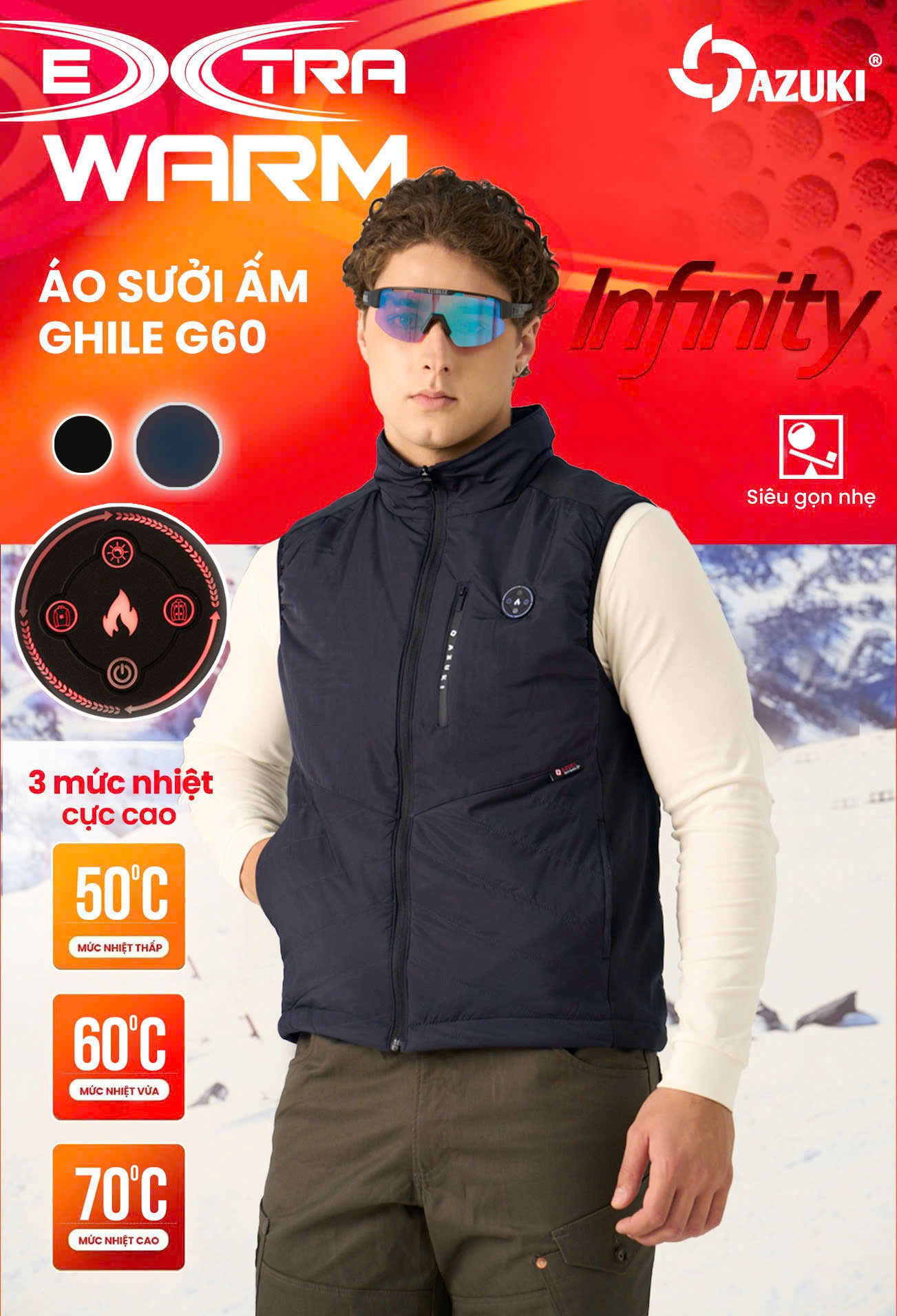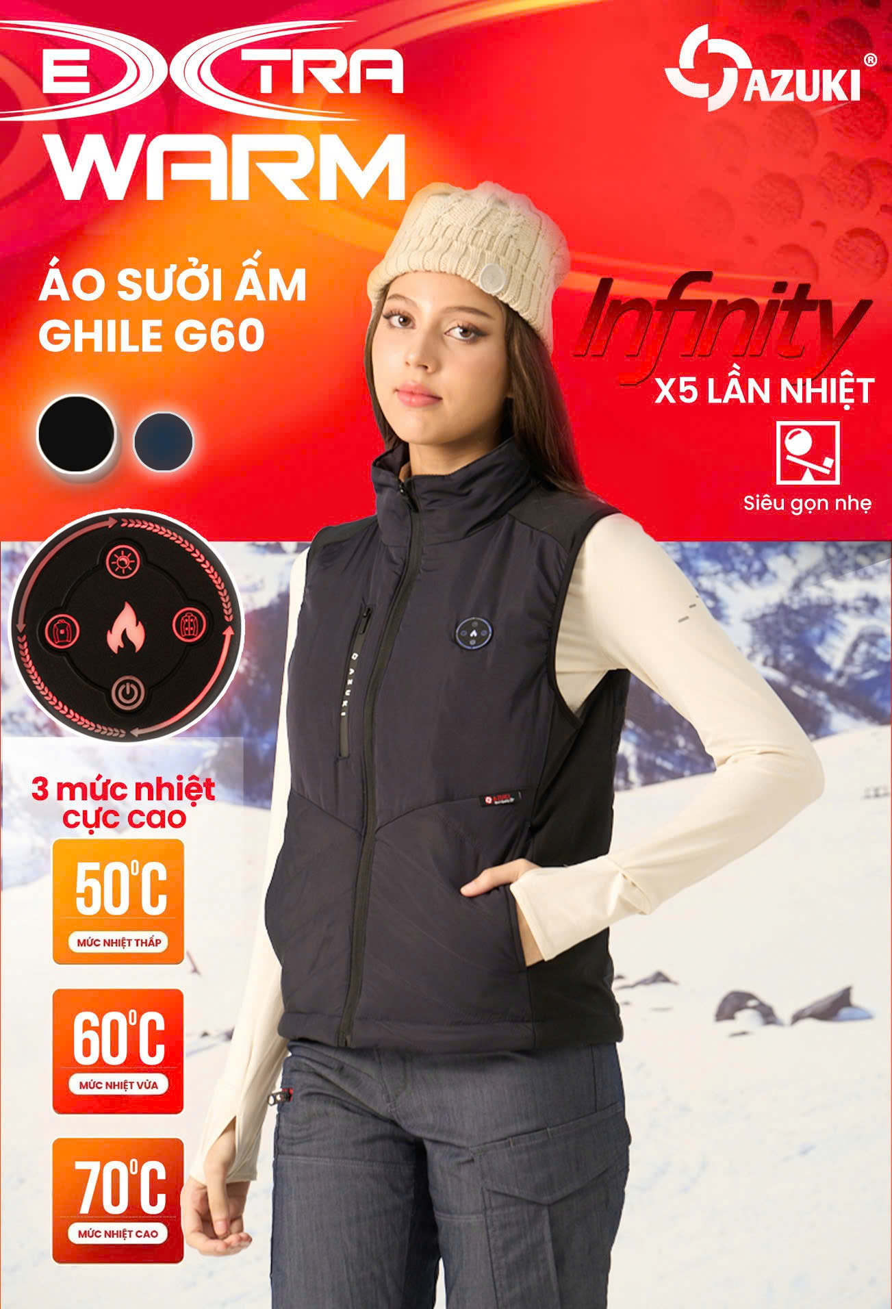 Azuki Extra Warm Ghile 2026 ra đời để đáp ứng đúng nhu cầu đó: thiết kế ghile 𝐧𝐡𝐞̣ – 𝐠𝐨̣𝐧 – 𝐡𝐢𝐞̣̂𝐧 đ𝐚̣𝐢, giữ ấm hiệu quả nhờ công nghệ sưởi thông minh với 3 mức nhiệt tlinh hoạt 𝟓𝟎°𝐂 – 𝟔𝟎°𝐂 – 𝟕𝟎°𝐂, giúp bạn luôn thoải mái dù ở trong nhà hay ra ngoài trời lạnh.